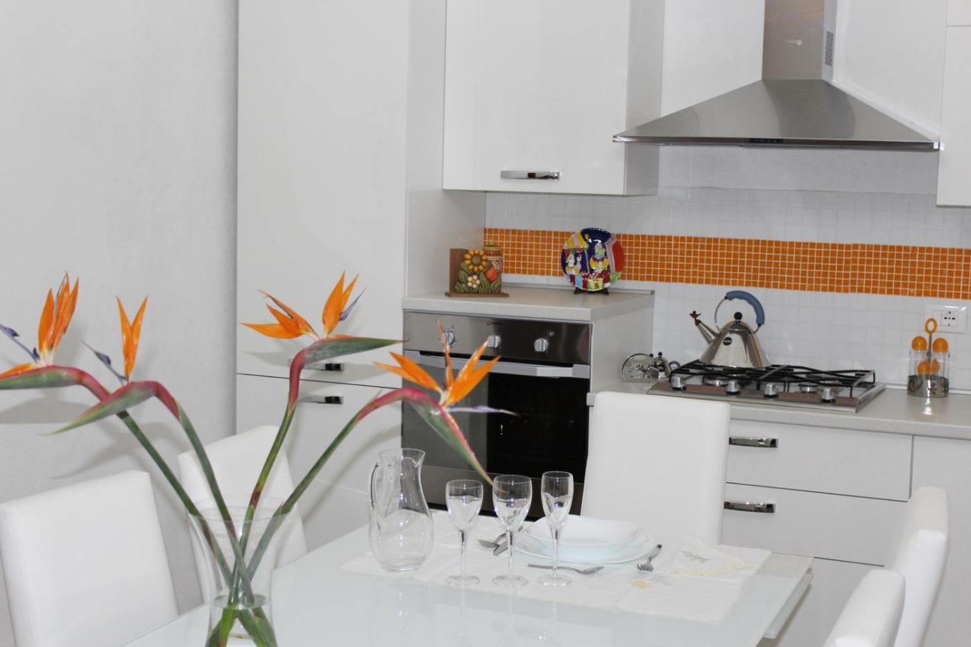 Appartamento con Terrazza. Boasting a private entrance, this air-conditioned apartment comes with 1 living room, 1 separate bedroom and 1 bathroom with a walk-in shower and a hairdryer. Meals can be prepared in the well-fitted kitchen, which features a stovetop, a refrigerator, kitchenware and an oven. The unit has a washing machine, sea views, a terrace and winechampagne is available for guests. The unit has 2 beds.