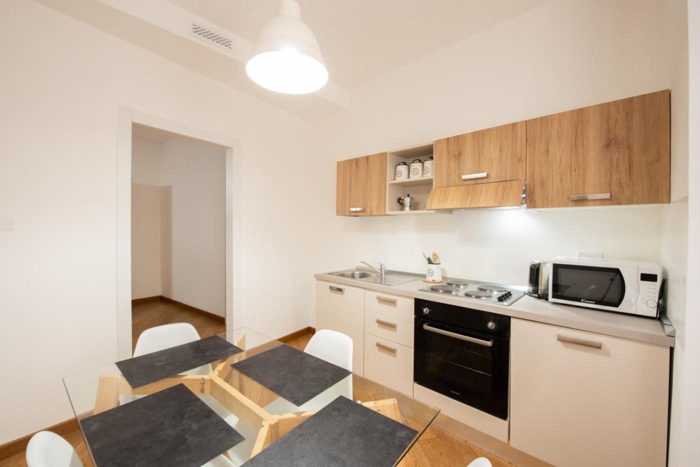 Appartamento con 3 Camere da Letto. Dotato di ingresso indipendente, questo appartamento cimatizzato include un soggiorno, 3 camere da letto separate e 2 bagni con doccia e bidet. Troverete una cucina ben attrezzata con piano cottura, frigorifero, utensili e forno. Questo spazioso appartamento dispone di TV a schermo piatto con canali via cavo, pareti insonorizzate, minibar,per la preparazione di tè e caffè, e vista sul cortile interno. L’alloggio presenta 4 letti.