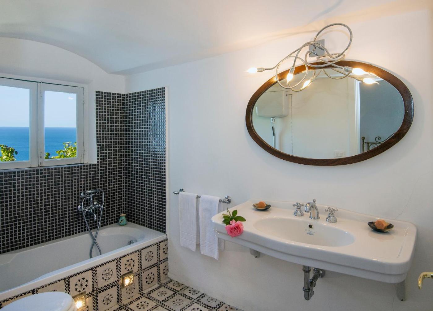 Villa con Vista Mare. The fireplace is the standout feature of this villa. Boasting a private entrance, this air-conditioned villa features 1 living room, 2 separate bedrooms and 2 bathrooms with a shower and a bidet. Guests will find a stovetop, a refrigerator, kitchenware and an oven in the kitchen. The villa also comes with a barbecue. The villa has a tea and coffee maker, a seating area, a wardrobe as well as a terrace with sea views. The unit has 4 beds.