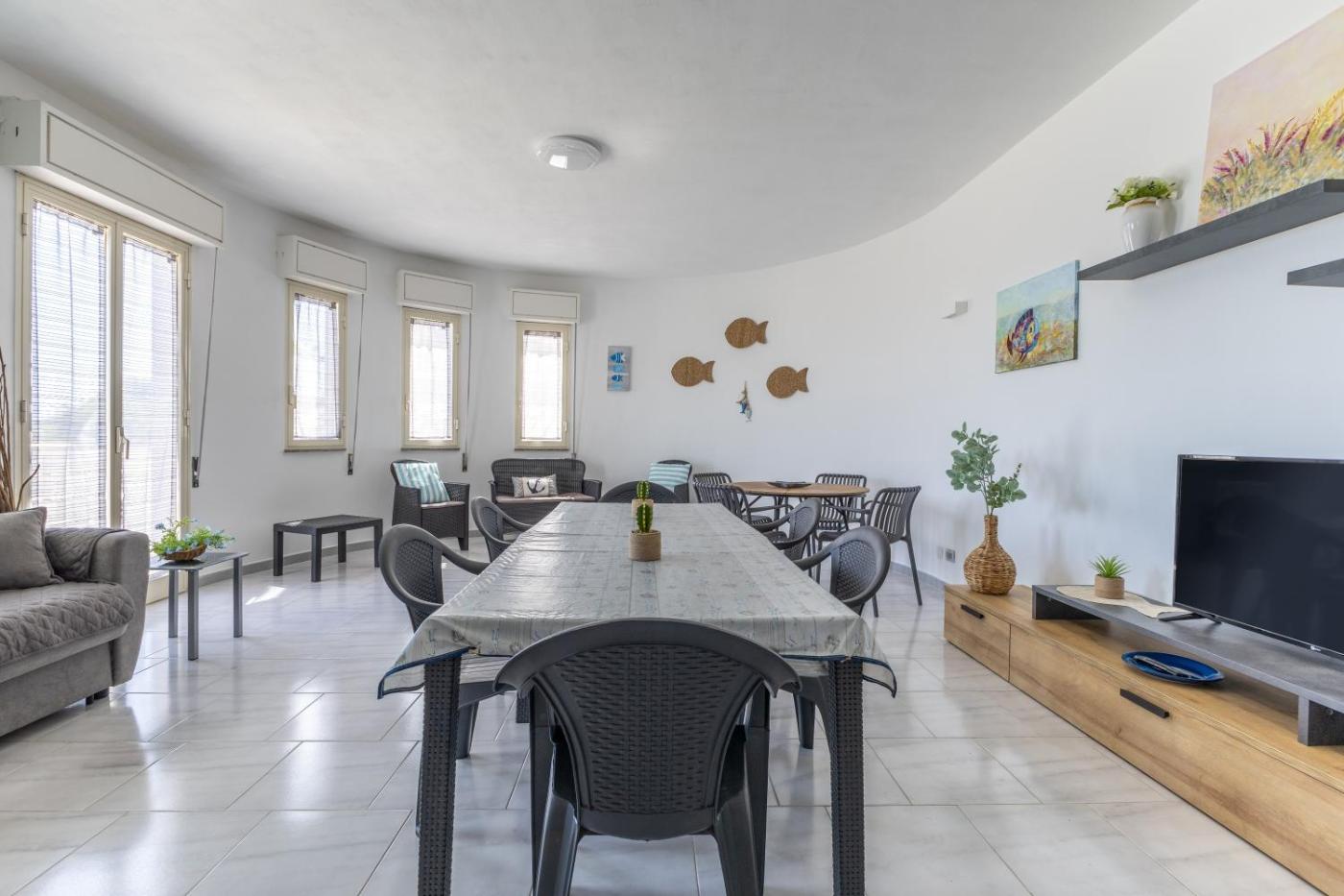 Villa con Vista Mare. Featuring a private entrance, this air-conditioned villa consists of a kitchen, 3 bedrooms and 2 bathrooms with a shower and a hairdryer. Guests will find kitchenware, an oven and a microwave in the kitchen. The villa also offers a barbecue. Boasting a terrace with sea views, this villa also provides a washing machine and a TV. The unit offers 5 beds.