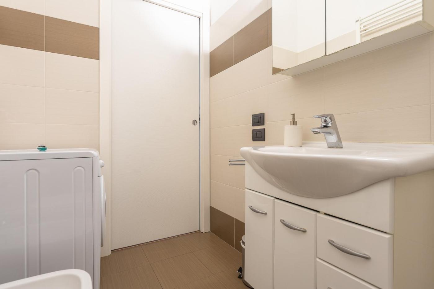 Appartamento con 2 Camere da Letto e Balcone. Featuring a private entrance, this air-conditioned apartment consists of 1 living room, 2 separate bedrooms and 2 bathrooms with a shower and a bidet. Guests can make meals in the kitchen that is equipped with a refrigerator, a dishwasher, kitchenware and an oven. The spacious apartment provides a washing machine, a minibar, a tea and coffee maker, a wardrobe and a TV. The unit offers 4 beds. ;