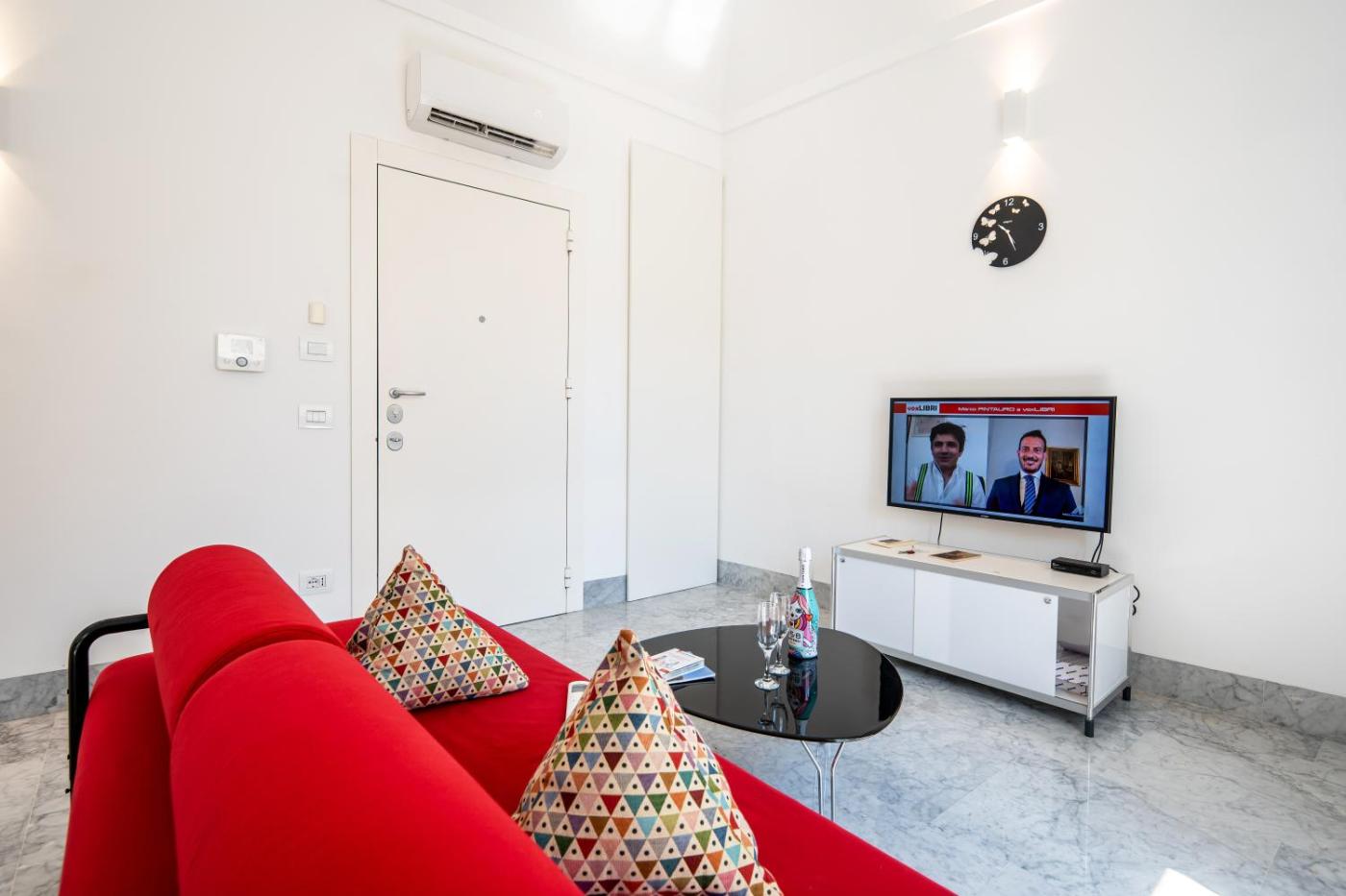 Appartamento con 1 Camera da Letto. Featuring a private entrance, this air-conditioned apartment comprises 2 living rooms, 1 separate bedroom and 1 bathroom with a shower and a bidet. Meals can be prepared in the well-fitted kitchen, which comes with a stovetop, a refrigerator, a dishwasher and kitchenware. The spacious apartment provides a washing machine, a tea and coffee maker, a seating area, a dining area and a flat-screen TV. The unit offers 2 beds.