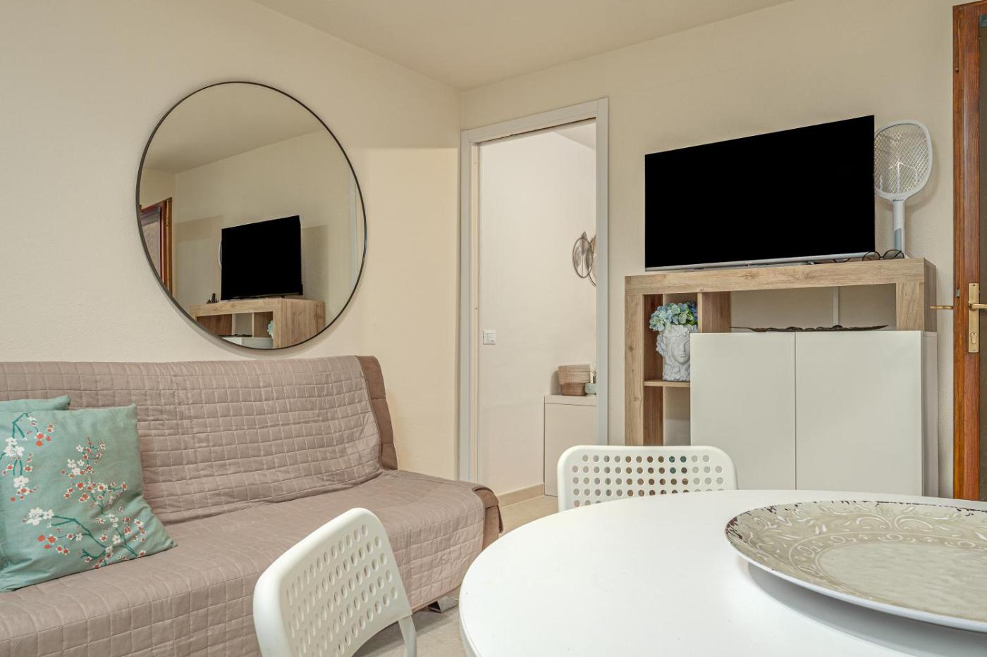 Questa casa vacanze prevede 2 camere da letto, 1 bagno, lenzuola, asciugamani, una TV con canali satellitari, una cucina con utensili e un patio con la vista sul giardino.